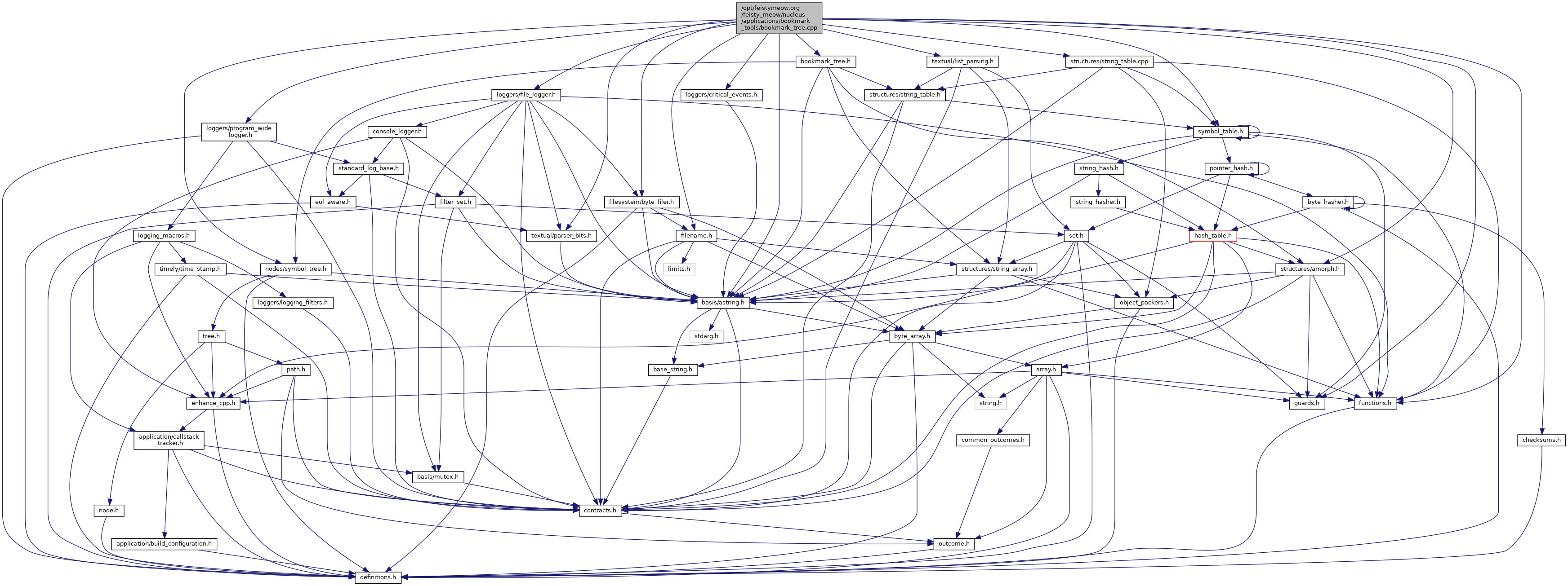 #include "bookmark_tree.h"#include <basis/astring.h>#include <basis/functions.h>#include <basis/guards.h>#include <filesystem/byte_filer.h>#include <filesystem/filename.h>#include <loggers/critical_events.h>#include <loggers/file_logger.h>#include <loggers/program_wide_logger.h>#include <nodes/symbol_tree.h>#include <structures/amorph.h>#include <structures/string_table.cpp>#include <structures/symbol_table.h>#include <textual/list_parsing.h>#include <textual/parser_bits.h>